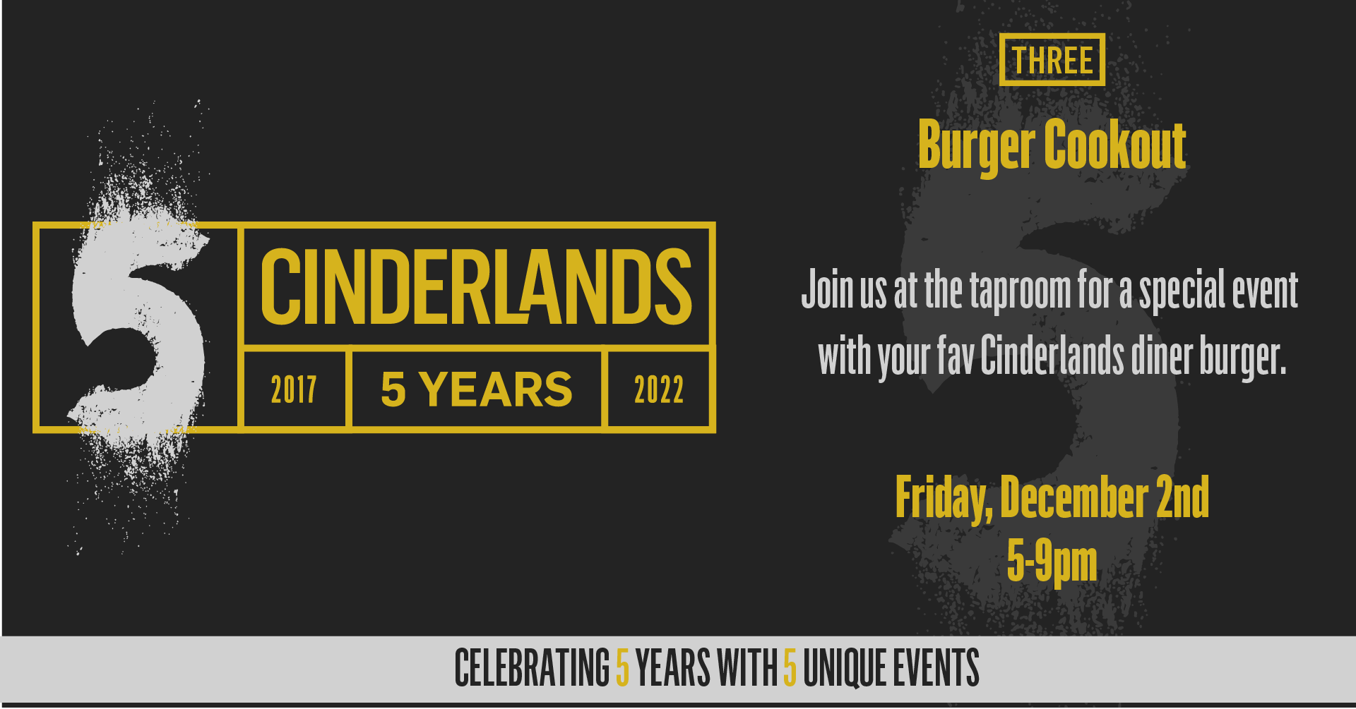 Join us at the taproom for a special event with your fav Cinderlands diner burger. We hope there will be plenty to go around day-of, but pre-ordering will help us plan for the crowd and guarantee you get your smashburger